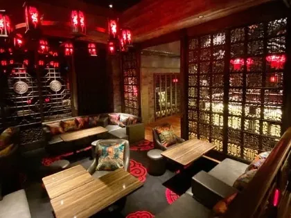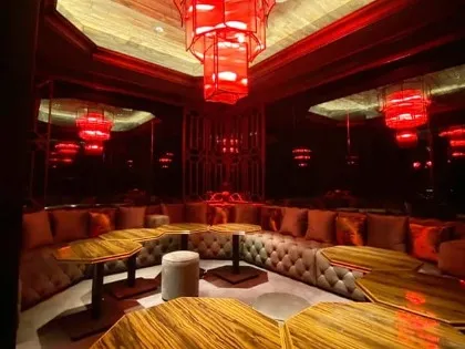 赤い照明に照らされた高級感溢れる店内が特徴!